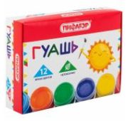 В наборе 12 ярких и насыщенных цветов: белый, красный, черный, синий, желтый, зеленый, коричневый, оранжевый, фиолетовый, светло-зеленый, голубой, розовый.Краски полностью безопасны в использовании, нетоксичны, без резкого запаха. Гуашь обладает высокой светостойкостью и укрывистостью, легко cмешивается и размывается водой, хорошо наносится, без труда удаляется с рук и одежды. Краски разлиты в пластмассовые герметичные баночки объемом 10 мл. Общий объем – 120 мл.