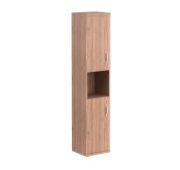 Универсальный шкаф-стеллаж правый IMAGO для офисного или домашнего использования. Размеры - 406х1975х365 мм, цвет - Груша Ароза. Оснащен 5 полками, две нижние закрывает дверца из ЛДСП, три верхние - открытые. Шкаф оснащен регулируемыми опорами для компенсации неровностей пола